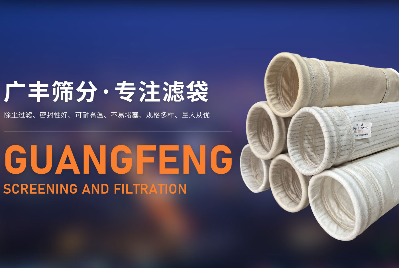 代替除塵布袋細長型除塵濾筒,以聚酯無紡布,不銹鋼或鍍鋅鐵頭,聚氨酯或硅膠頭底部,寬褶距,易清洗,頭部開口,封底,高過濾效率,增加2-3倍過濾面積。 廣豐篩分細長濾筒采用進口長纖維聚酯濾料,纖維均勻;濾料堅挺,脈沖反吹效果好;